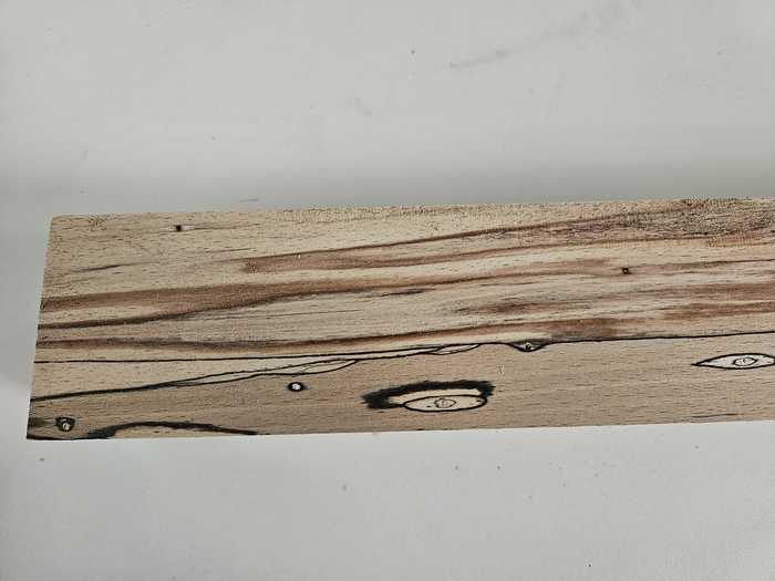 1 lot de carrelets (section carrée) en Hêtre échauffé avec défauts (trou d'attaque de ver avant séchage, fentes, noeuds, veine noire peu présente.....)